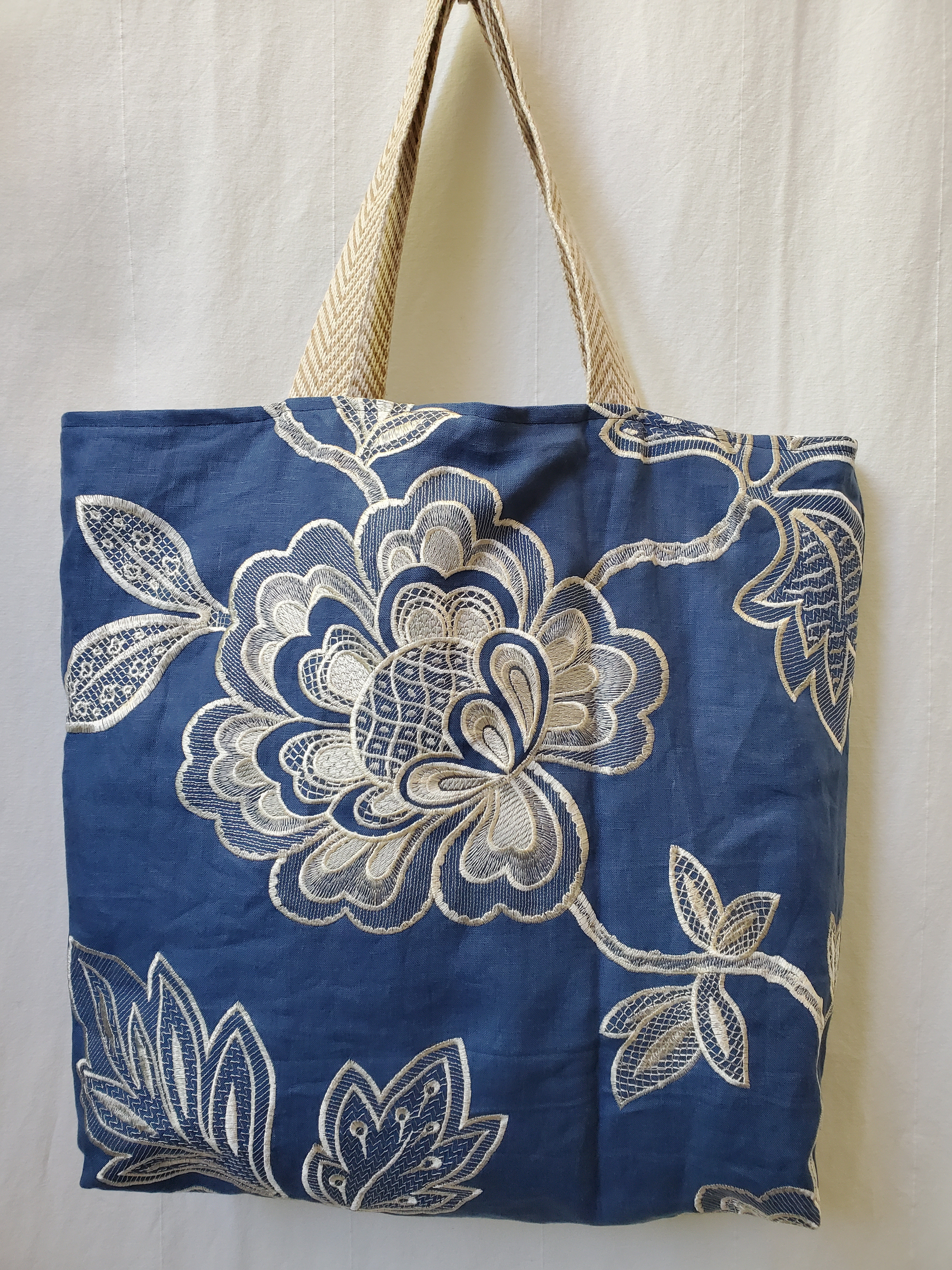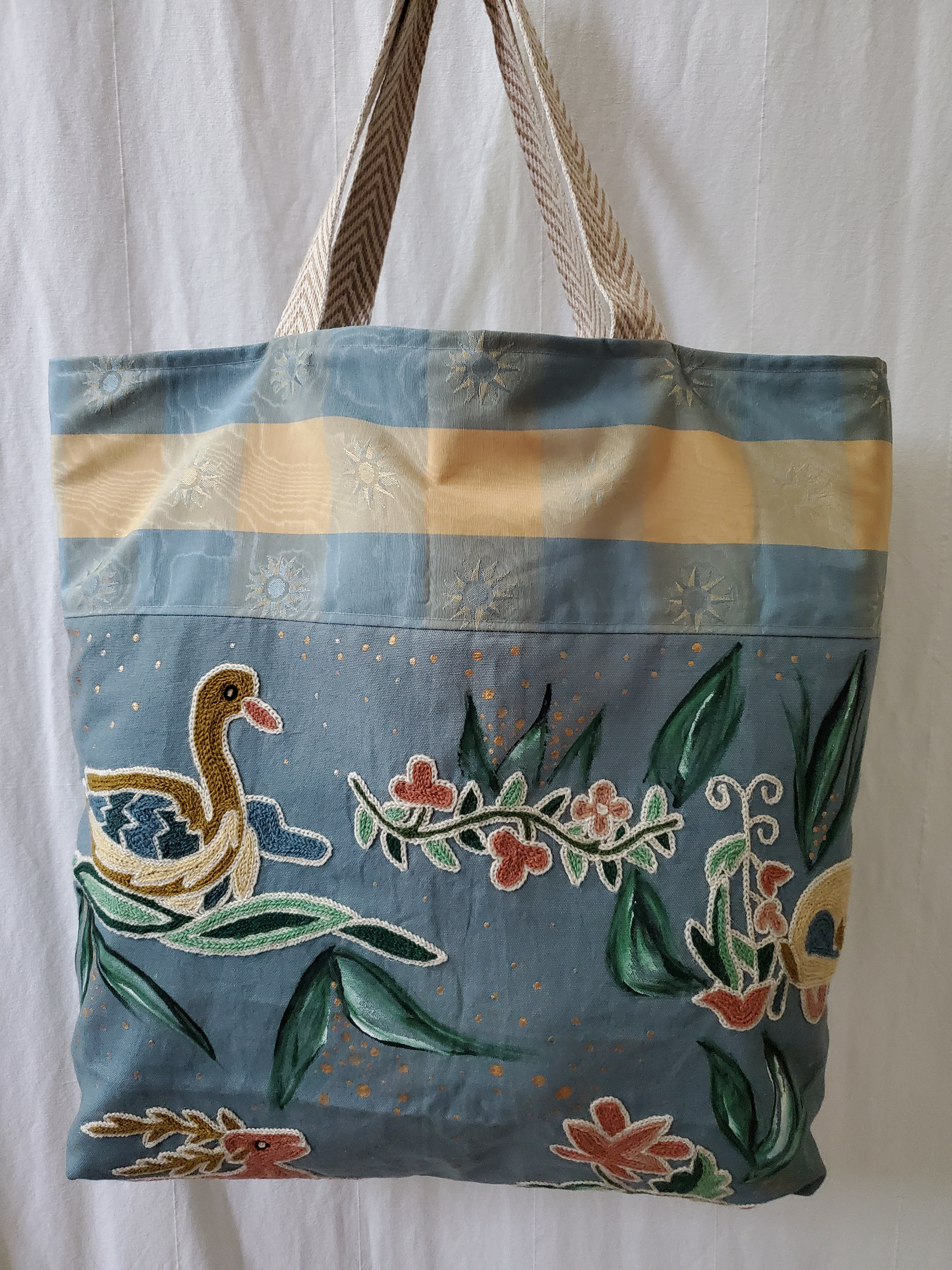 Unique Reversible Totebag 11: Embroidered Animals - Toile