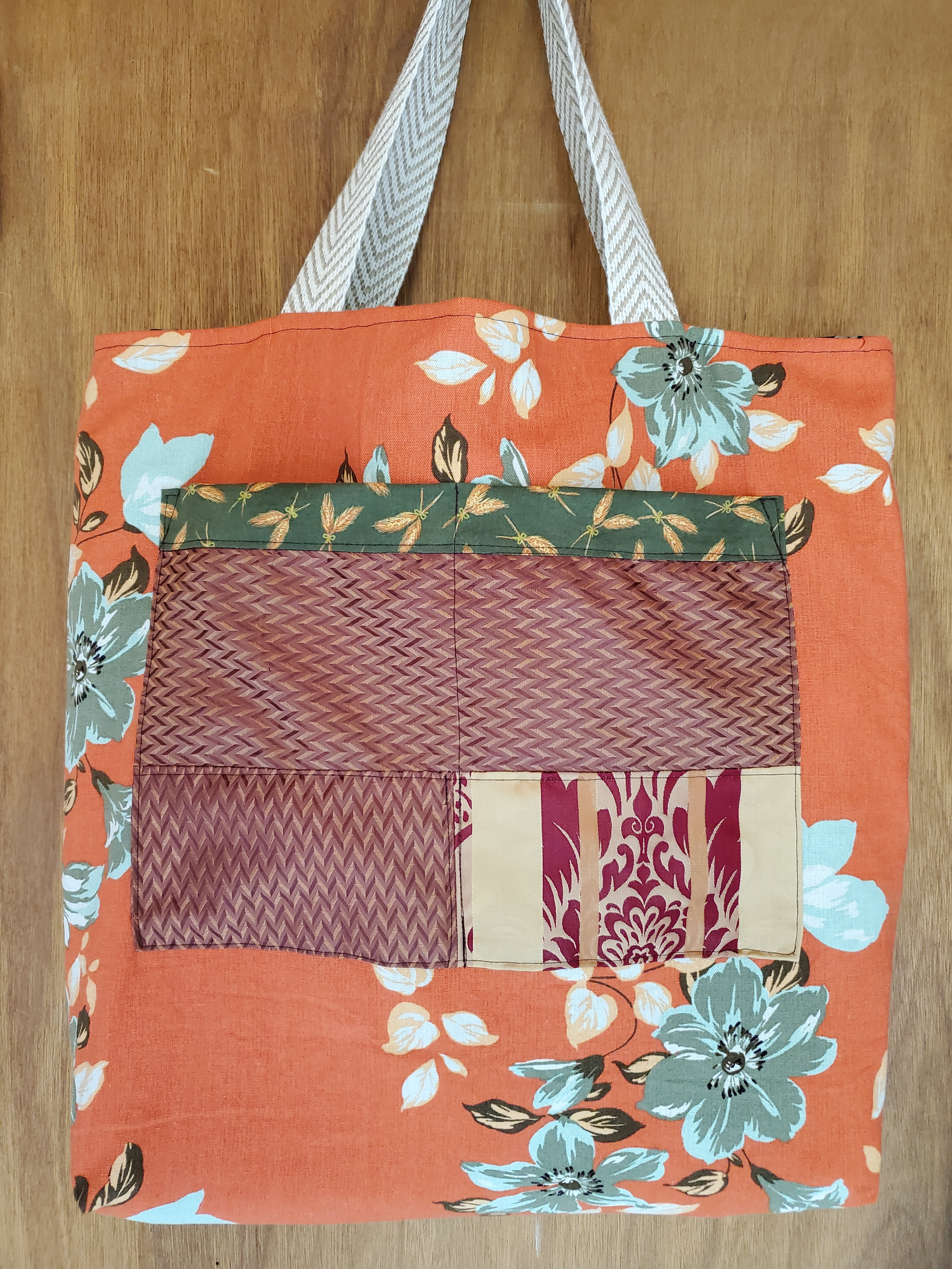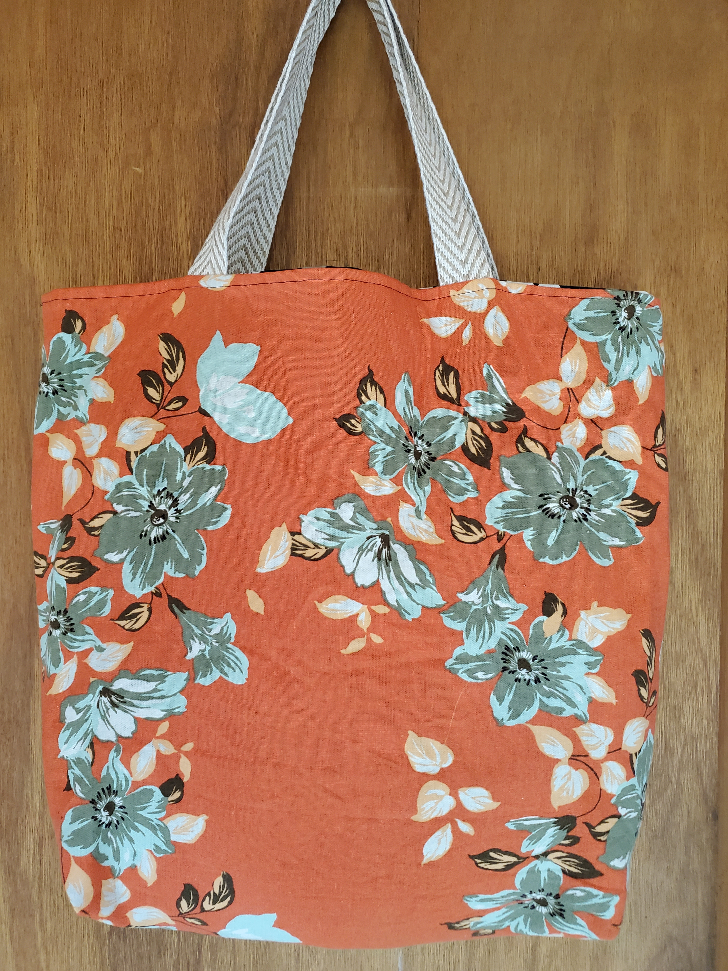 Unique Reversible Tote Bag: Approximately 20.5" wide, 21" long. Handle about 22". This one is light to medium weight.