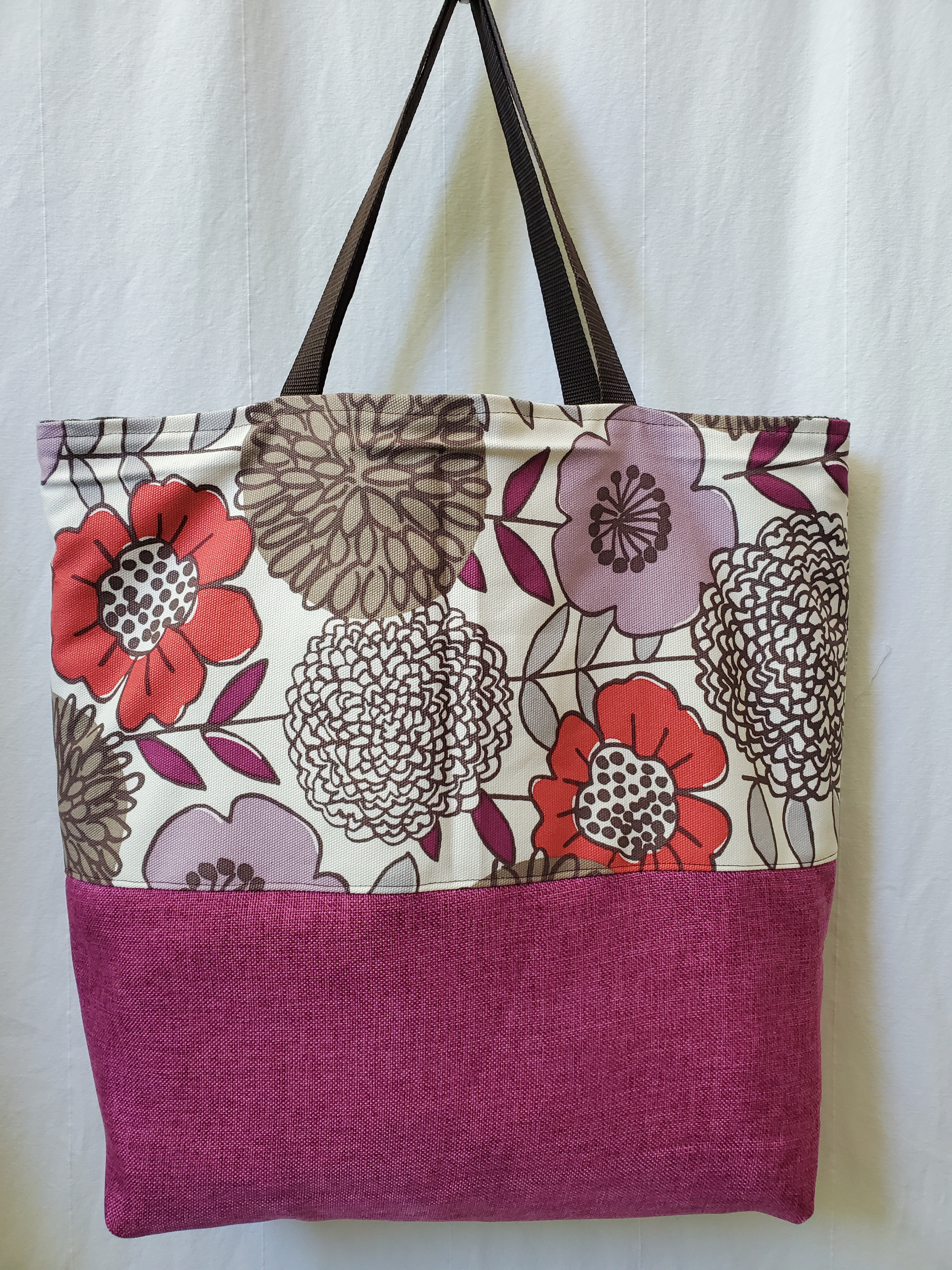 Unique Reversible Tote Bag: Approximately 20.5" wide, 21" long. Handle about 22".