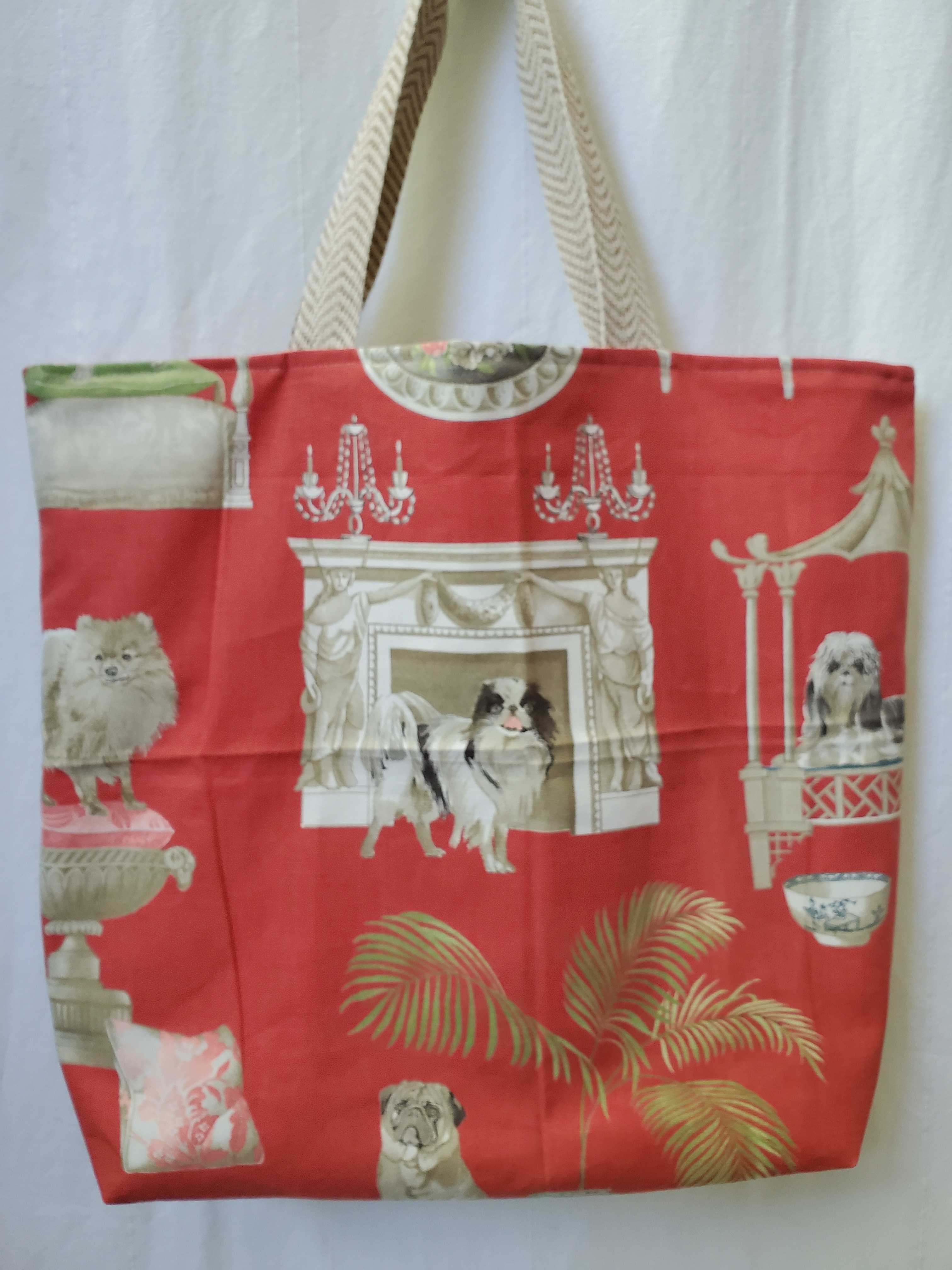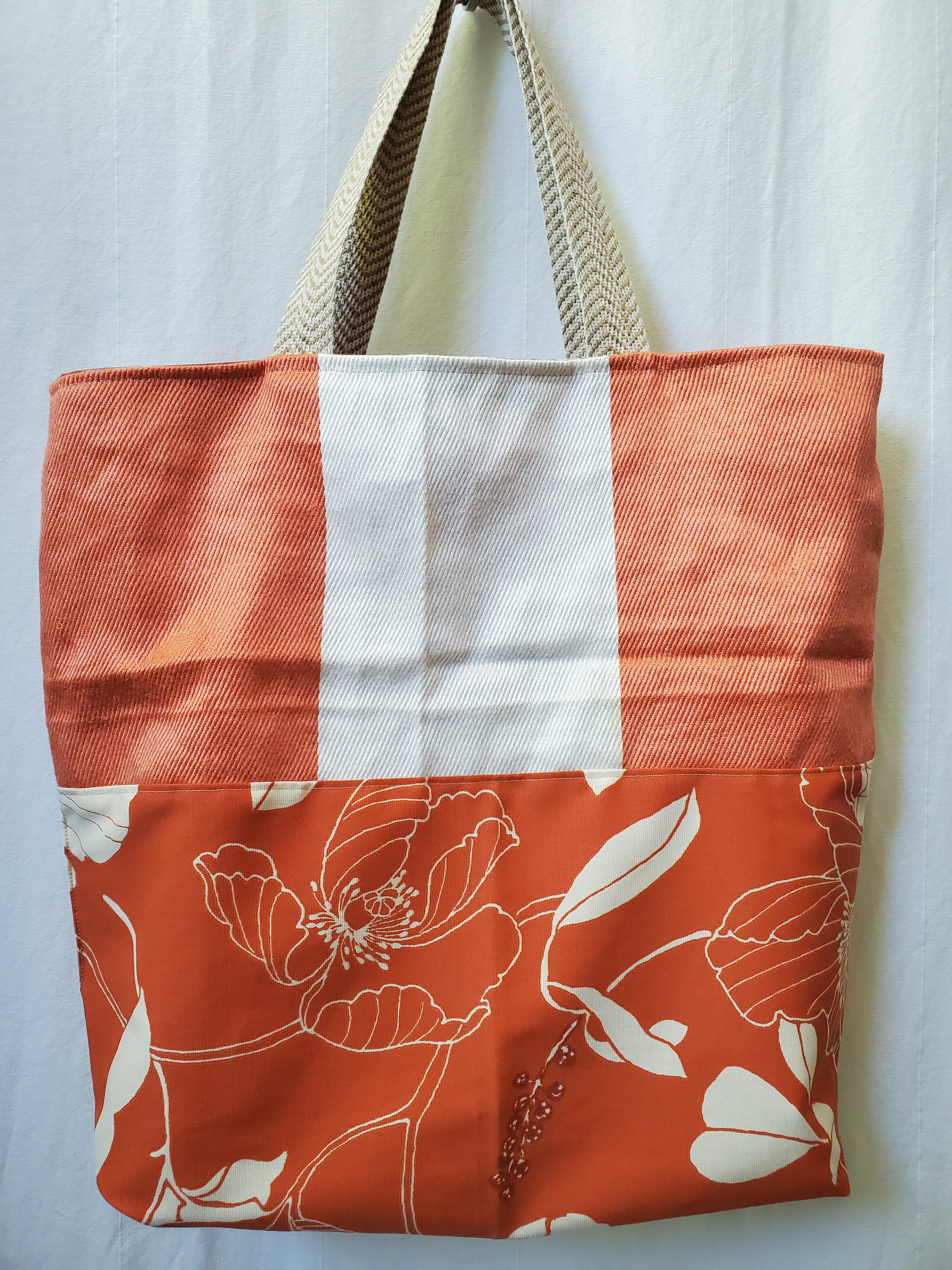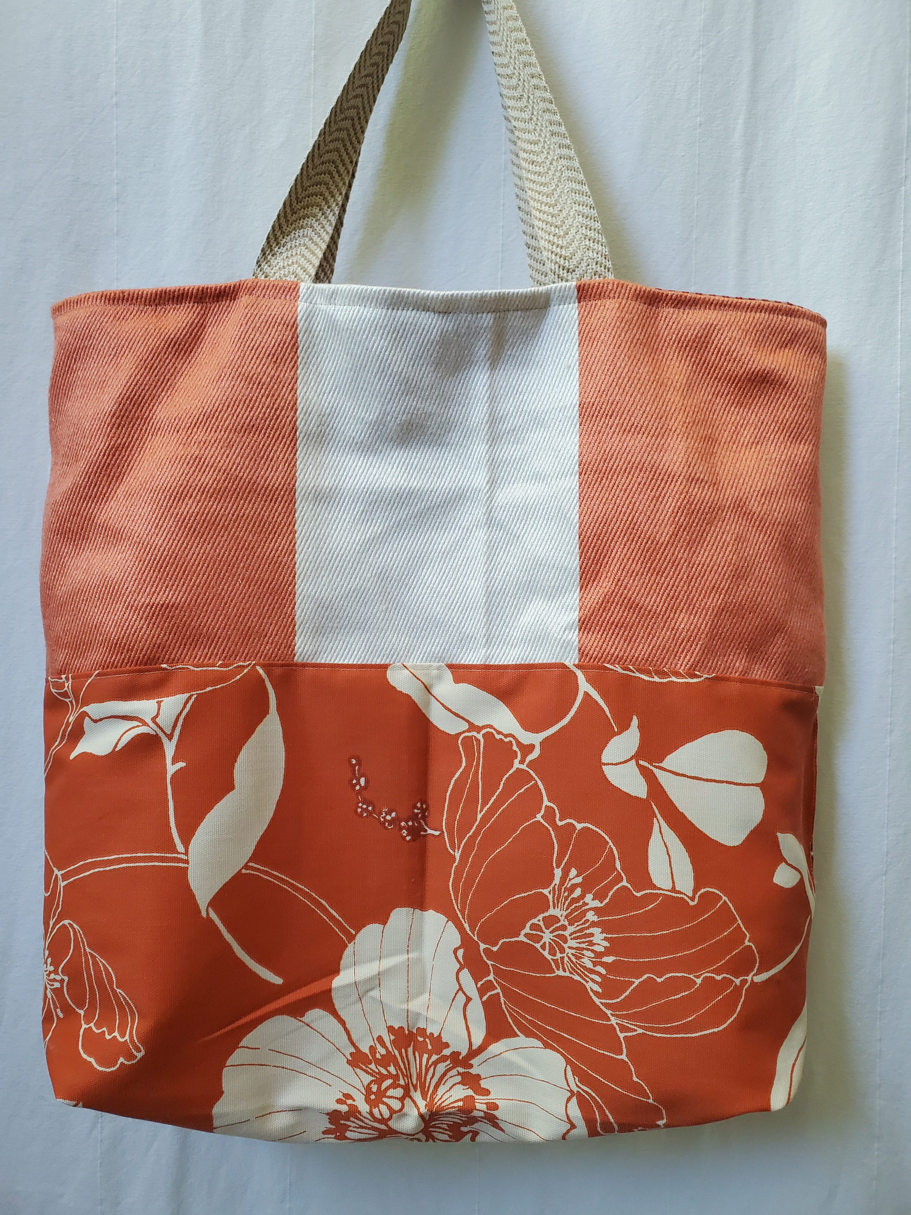 Unique Reversible Tote Bag: Approximately 19.5" wide, 20" long. Handle about 22".