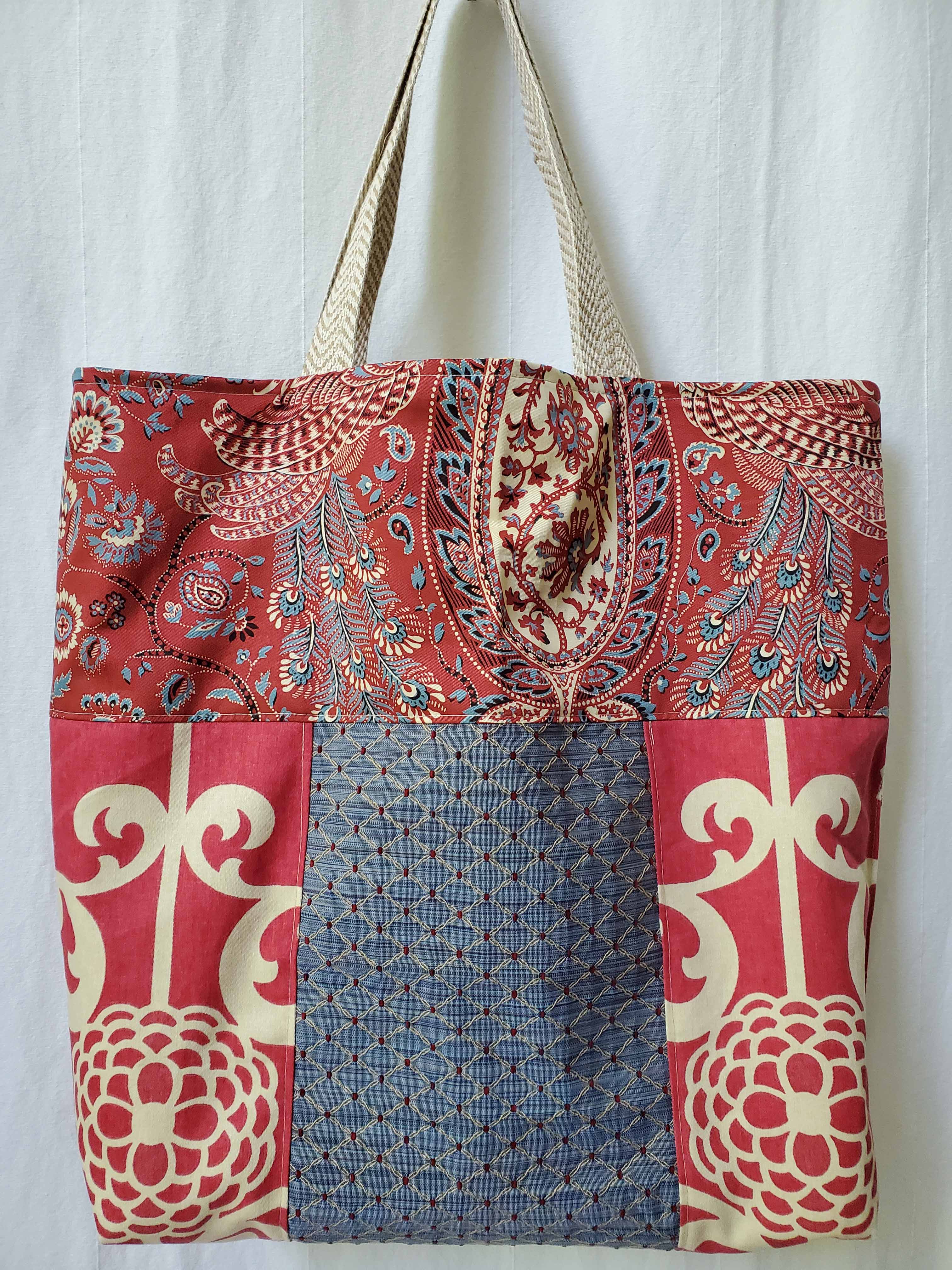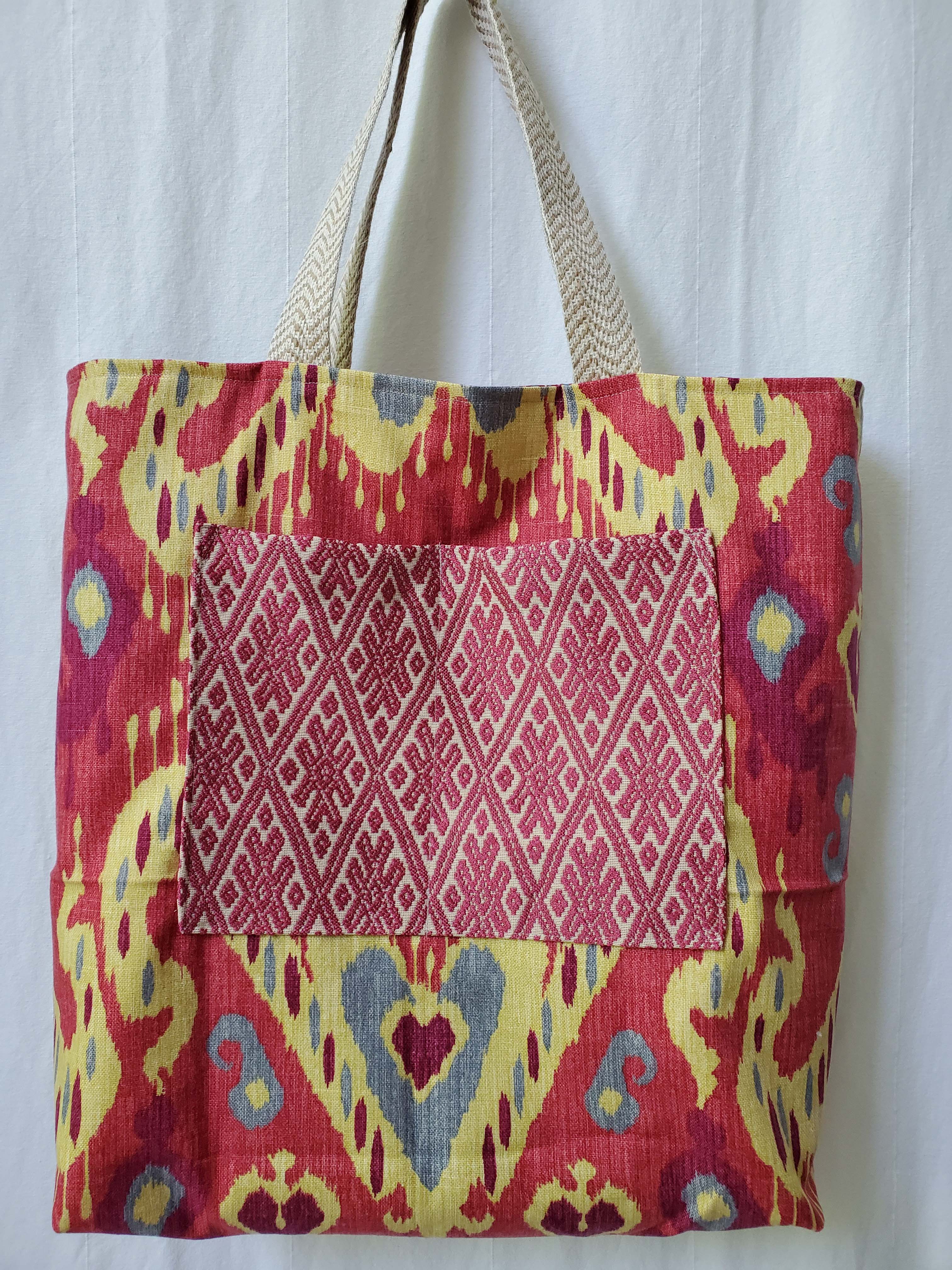 Unique Reversible Tote Bag: Approximately 19.5" wide, 20.5" long. Handle about 22".