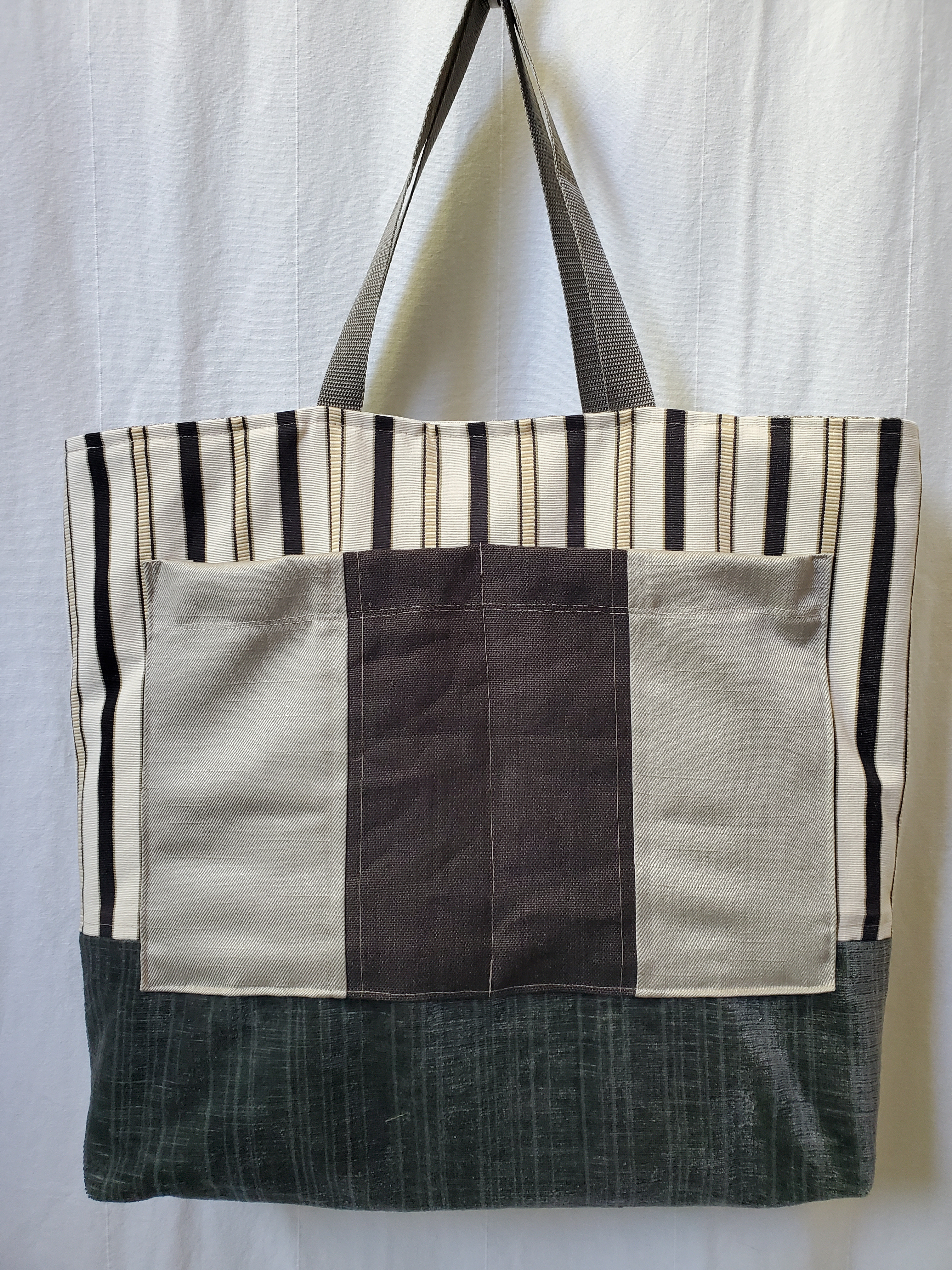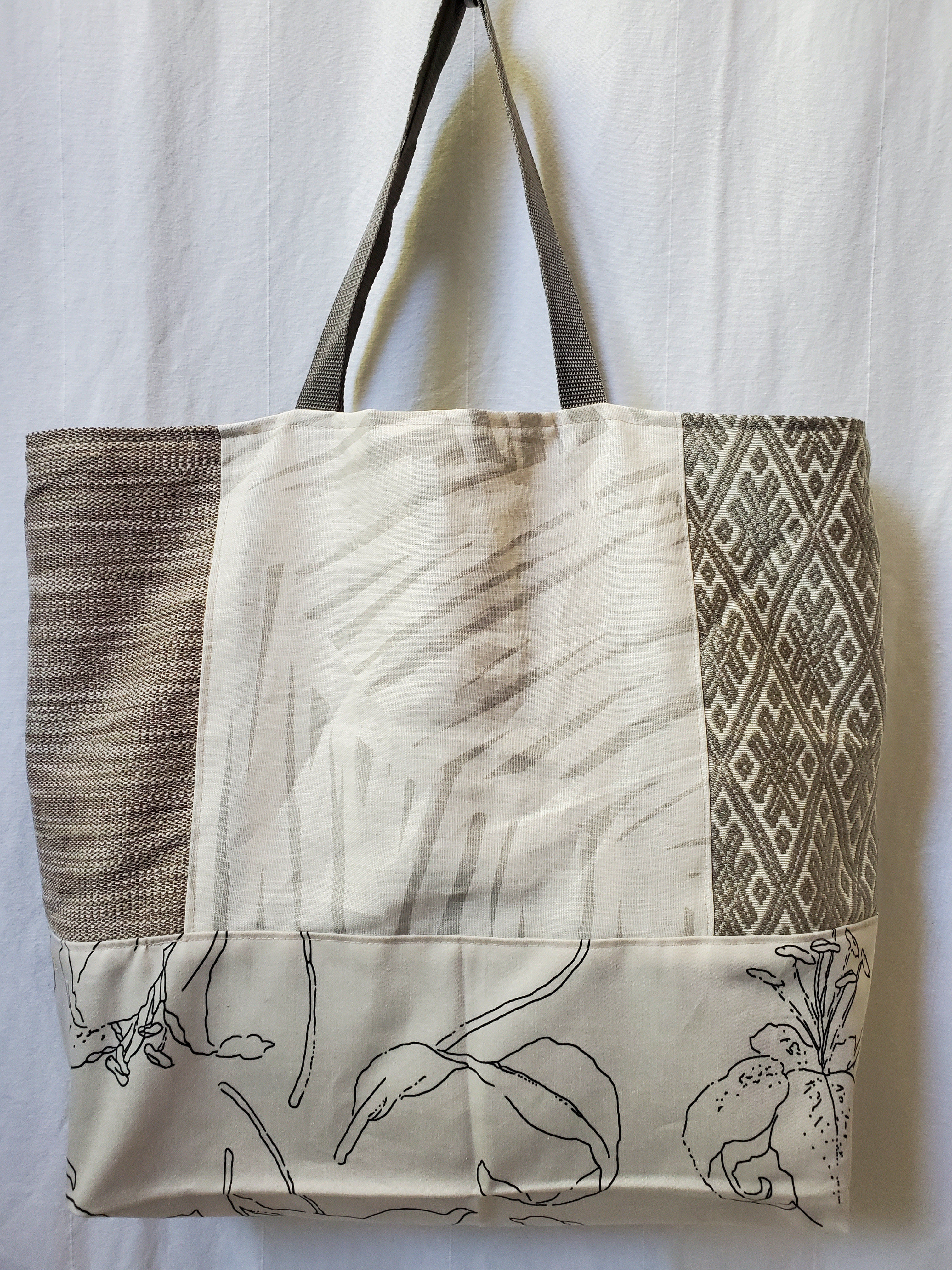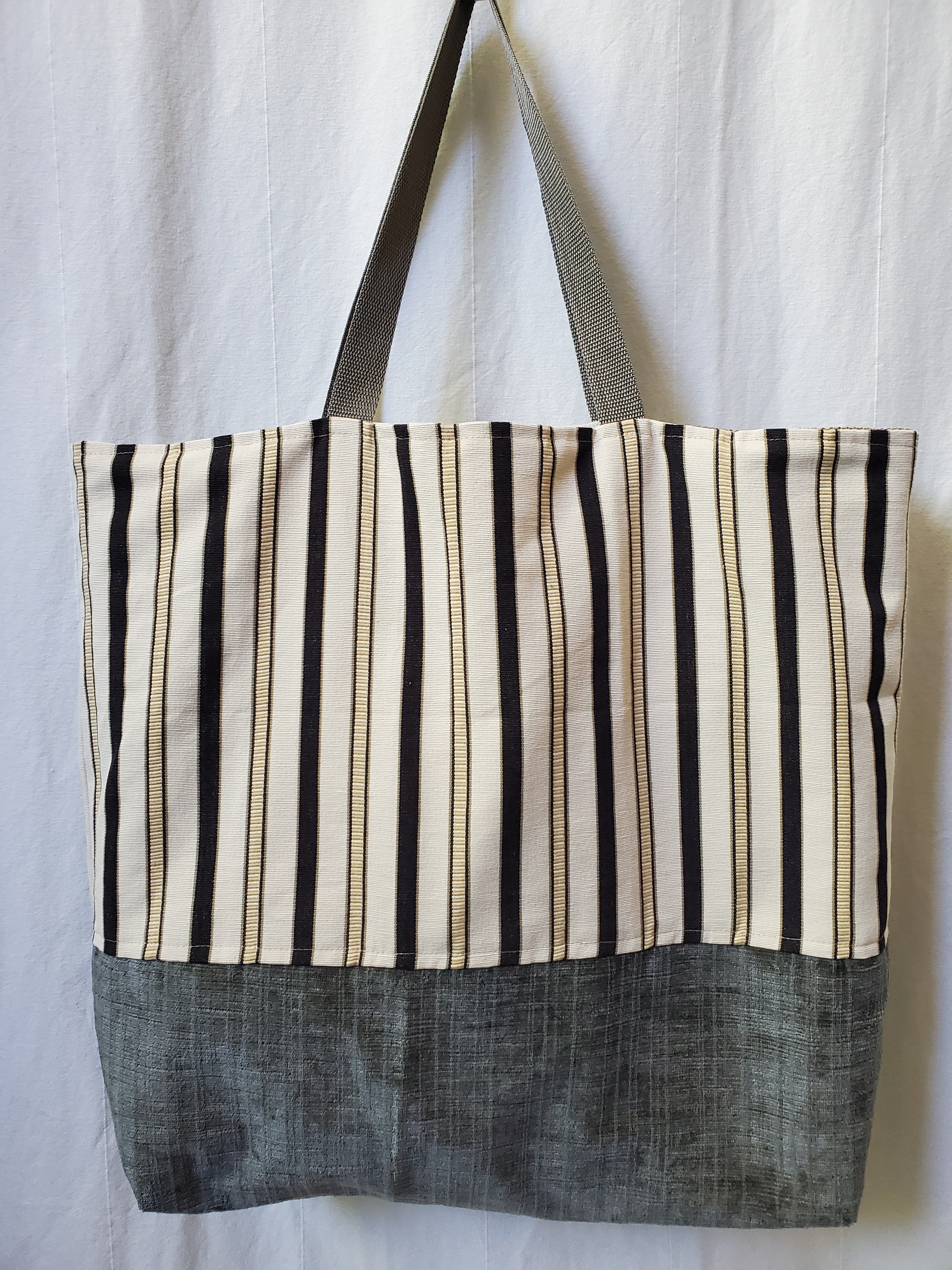 Unique Reversible Tote Bag: Approximately 19.5" wide, 20" long. Handle about 22".