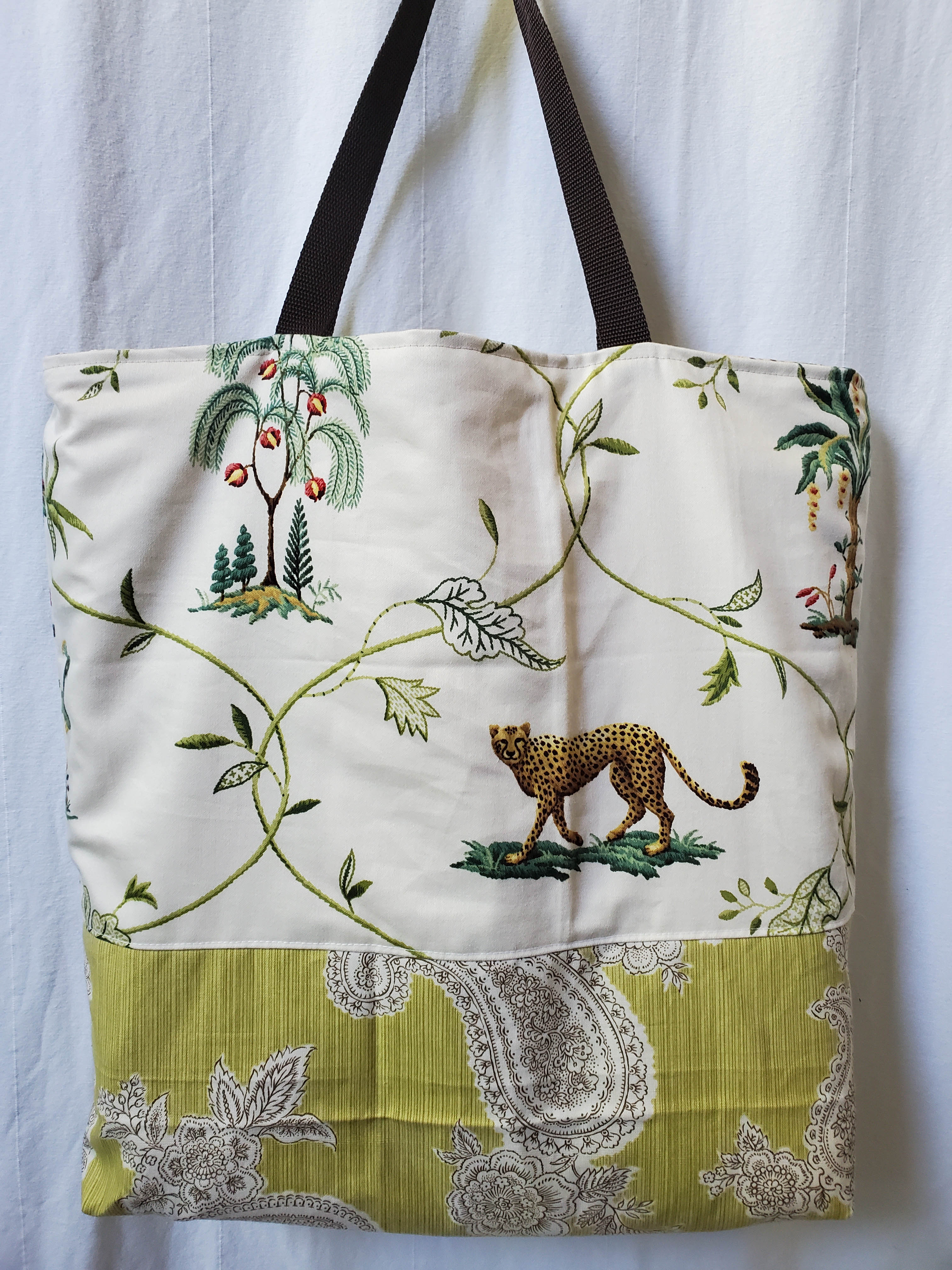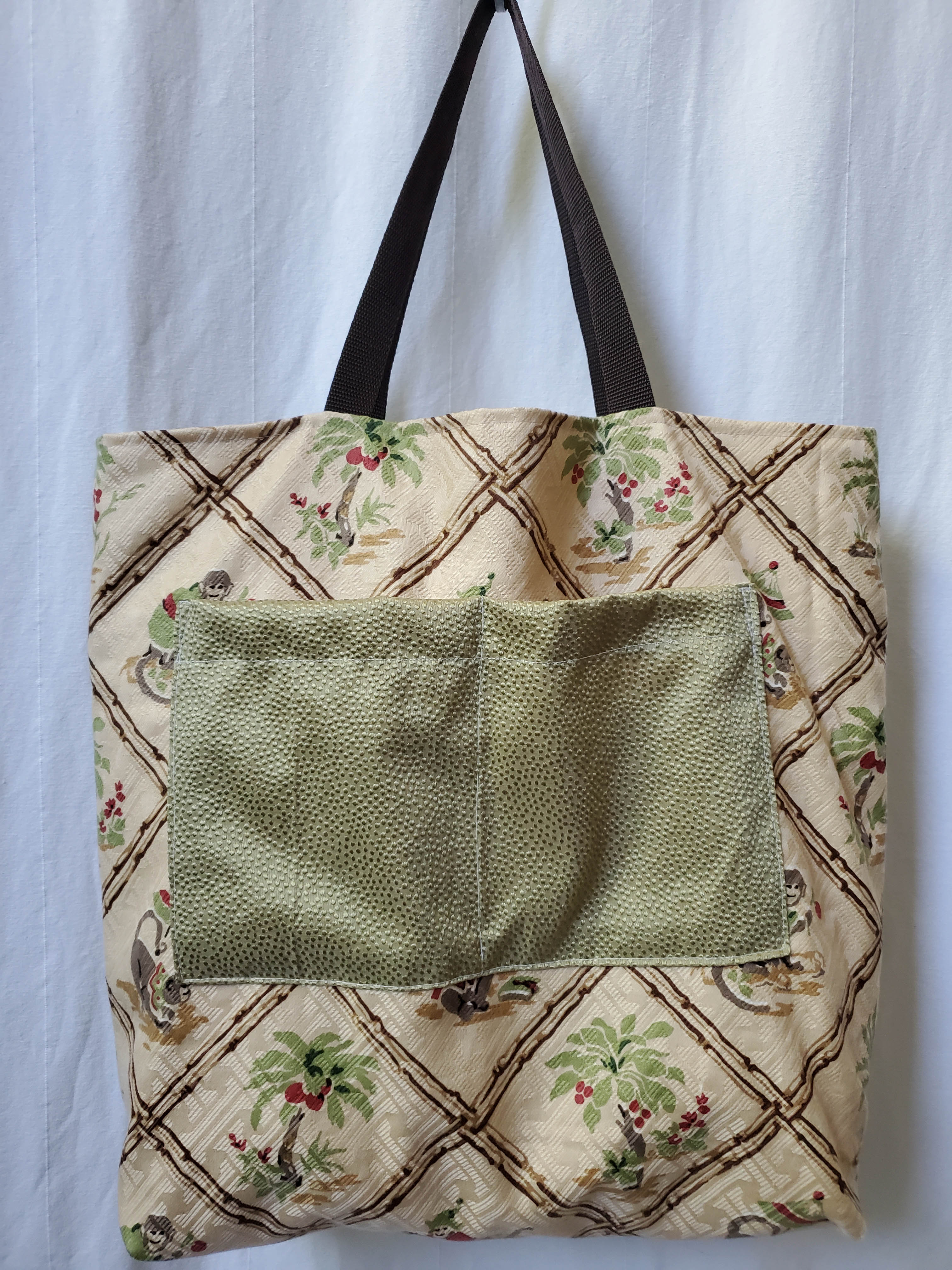 Unique Reversible Tote Bag: Approximately 19.5" wide, 19.5" long. Handle about 22".